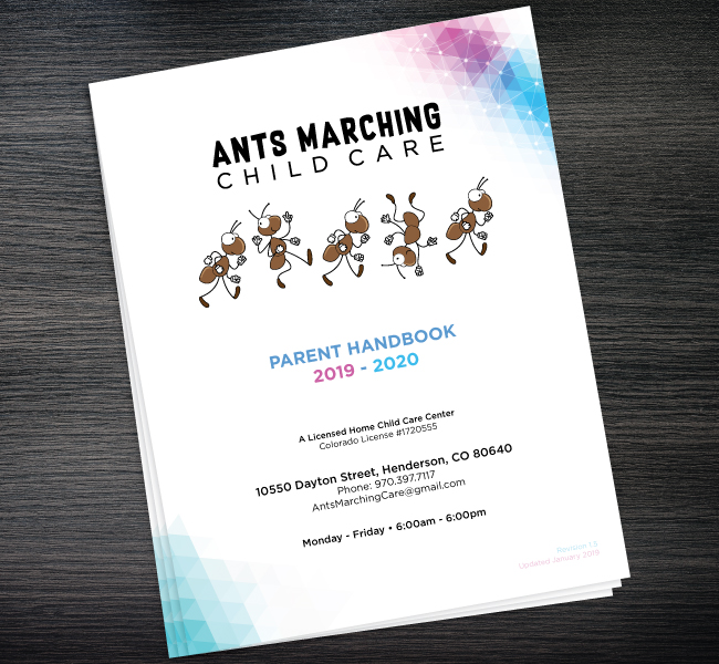 In late 2017 my wife decided to transition out of her full-time day job to running an in-home daycare facility. Branding work for the business started with a list of roughly 15 names that we both felt were not only playful and kid-centric, but conveyed the approach we wanted to take as an affordable in-home facility that operated in a similar manner to larger learning facilities. Out of the original list of names, we found we were most drawn to the phrase Ants Marching, eventually completing the business name as Ants Marching Child Care.