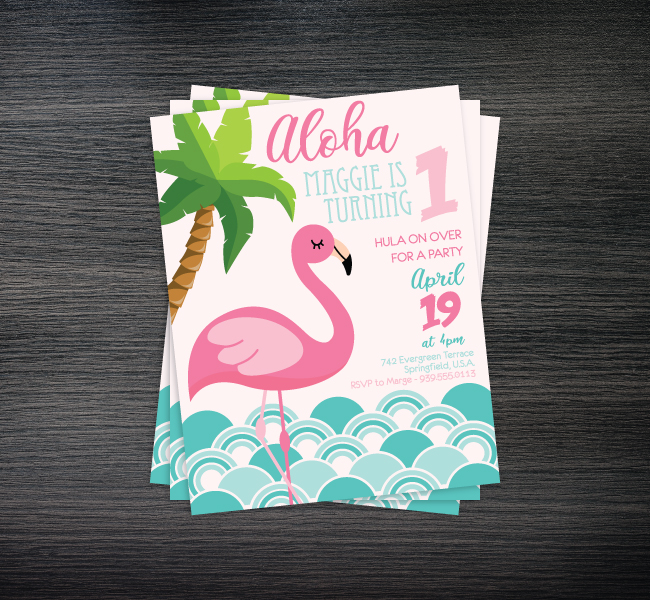 While my discussions about the text with the client had me using the script font for the entire text component, I felt I needed to contrast the script with a clean, minimal, sans serif font. I called an audible before my final presentation with the client, and without much hesitation, chose Eurofurence for its simplicity and unique letter shapes and angles. Once I got the kerning between the two typefaces how I liked it, I felt there was a bit of dead space on the outer edge of the logo and decided to fill the space with another animal, placing a squirrel on top of the sans serif typeface.The requested turn around for this project was incredibly quick. On most invitation projects like this, I try to ask for a least a day to create the artwork and proof it at least once before sending the final copy to the client, but the request was to have this completed in less than 4 hours. When asking the client for information about the project, I was told that it should contain standard party contain information (address, time, RSVP information, etc), and should have a flamingo on it somewhere.